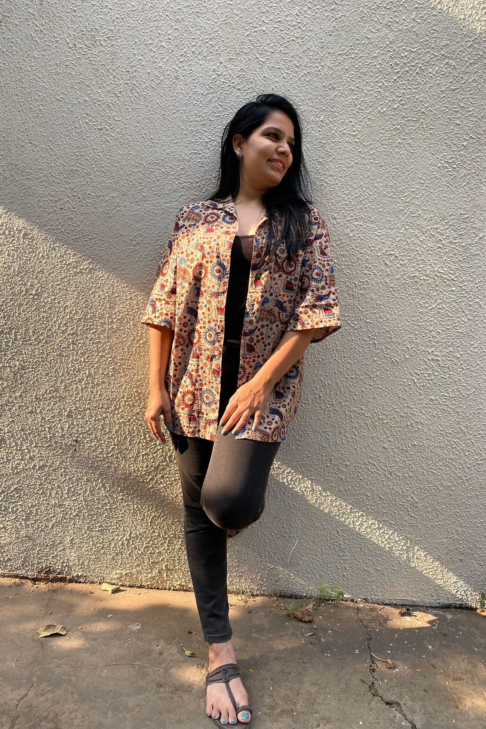 Earthy tones with a twist of traditional print, this uniquely designed shirt is the kind that you can wear on a long haul journey !